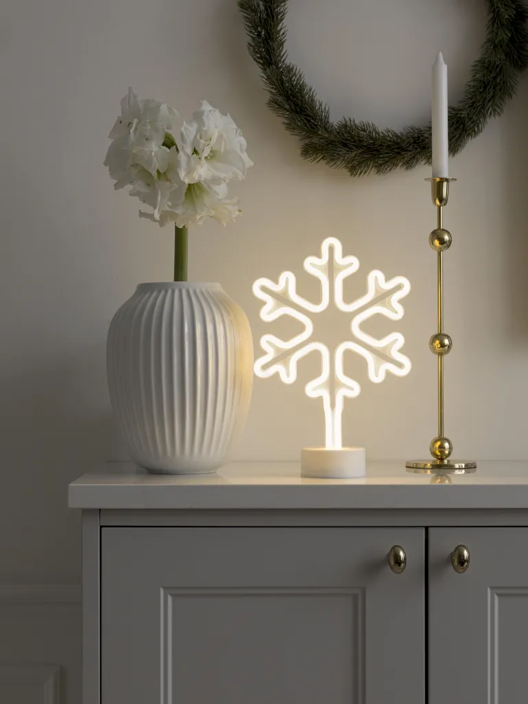 Konstsmide 3077-100 on valokoriste LED-valoletkulla (lumihiutale), jossa 192 lämpimän valkoista LEDiä. Ajastin 6 h. 3xAA.