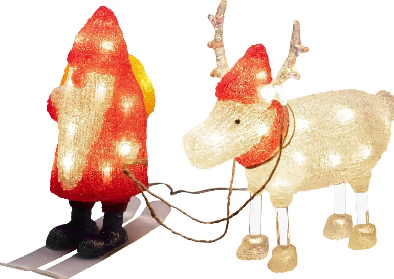 Konstsmide 6239-103 on valokoriste akryylia (tonttu ja poro), jossa on 40 lämpimän valkoista LEDiä. 24 V/IP44.