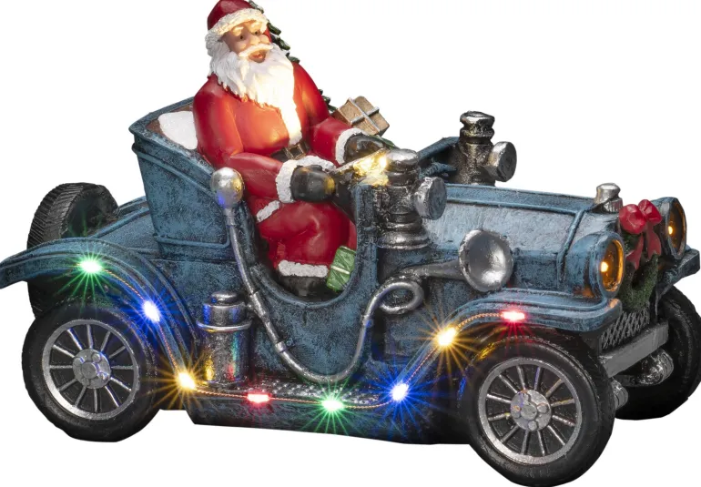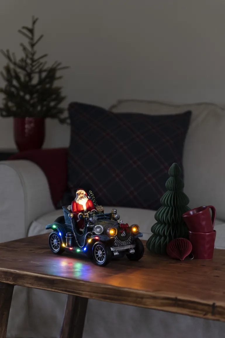Konstsmide 4239-000 on joulukoriste (joulupukki autossa), jossa 11 moniväristä LEDiä. 3xAA.