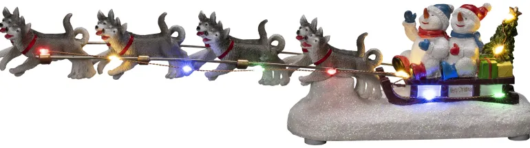 Konstsmide 4242-000 on joulukoriste (lumiukot ja koiravaljakko), jossa 10 moniväristä LEDiä. 2xAA, Ajastin 6 h.