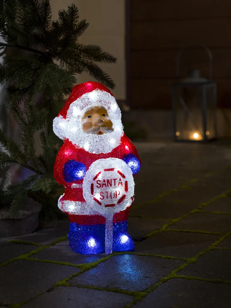 Konstsmide 6143-203 on valokoriste akryylia (joulupukki kyltillä). Valkoiset LEDit.