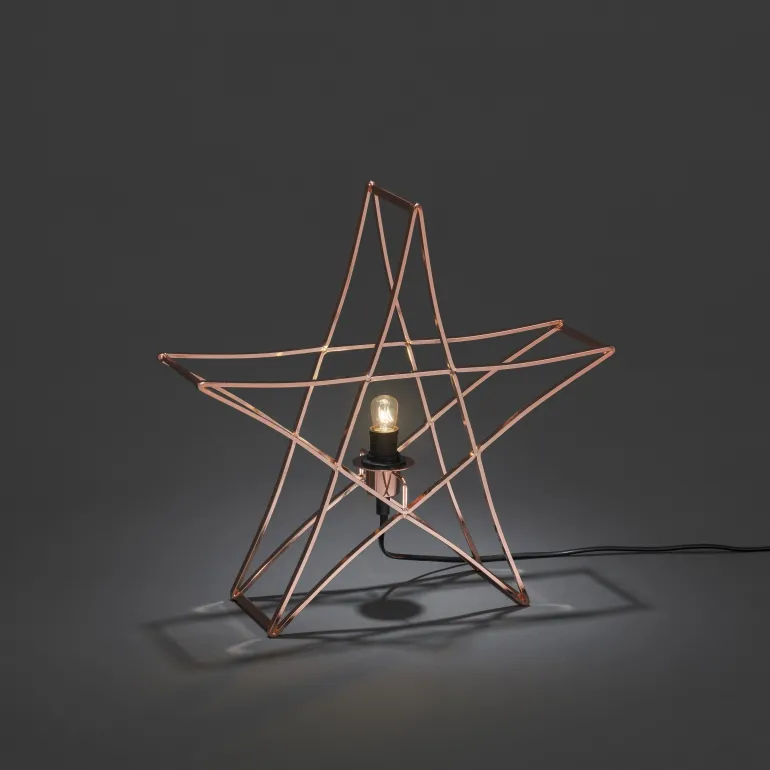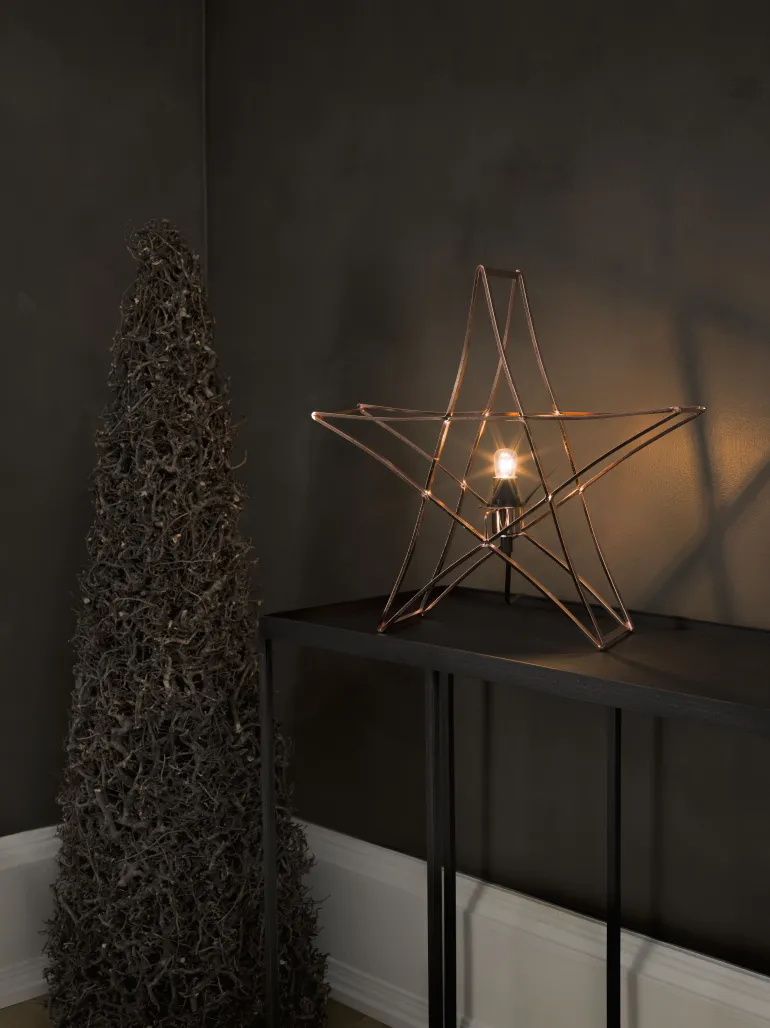 Konstsmide 3552-600 on metallitähti (pöytäkoriste, väri kupari), 40×40 cm. E14, musta johto, 230 V.