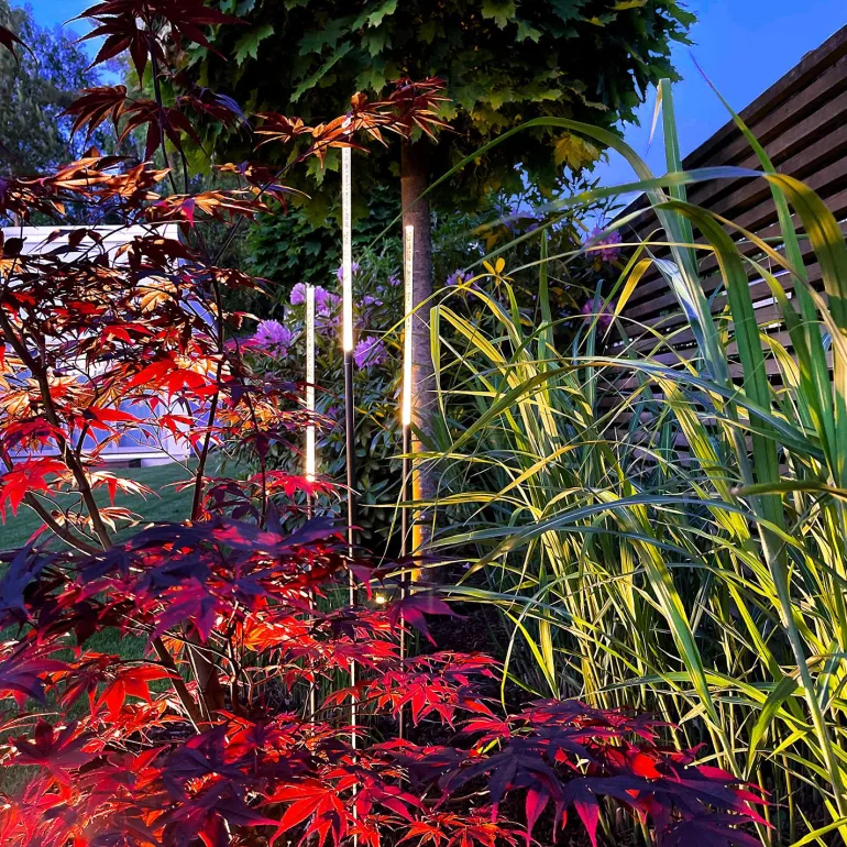 Huom! Aseta valaisimet ensin paikoilleen ennen kuin kiinnität akryylilasikuvun. Jos painat valaisimen maahan lasiosasta, voi lasi haljeta. On myös tärkeää, että pieni kumitiiviste asetetaan oikein, jotta vesi ei pääse valonlähteeseen ja vahingoita LEDiä.