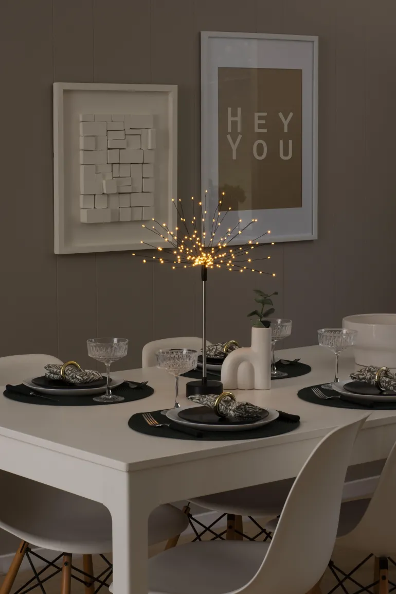 Konstsmide 1207-787 on metallinen valokoriste pöydälle. Musta, 4×40 LEDiä (amber) 50 cm.