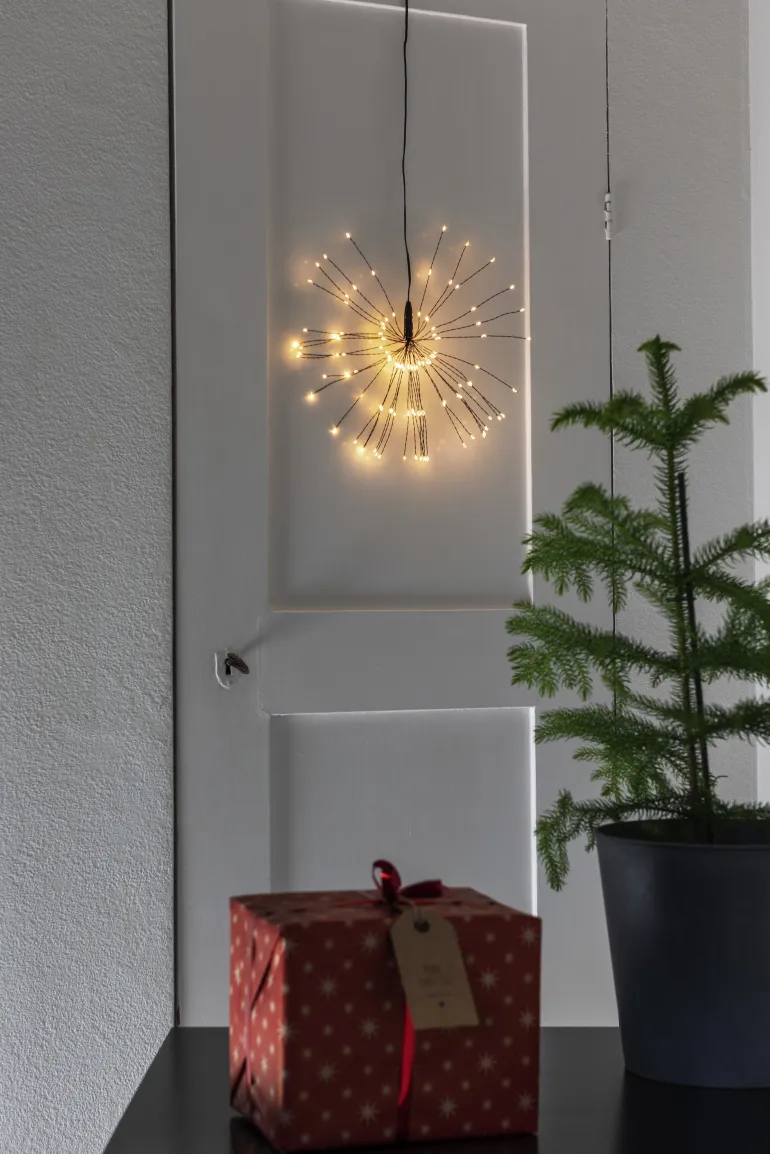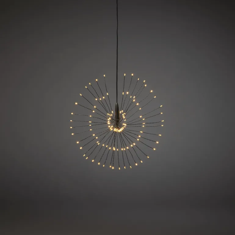 Konstsmide 3096-800 on valokoriste 25 cm, jossa on 120 mikro-LEDiä (amber). Musta johto, 6V/IP20.