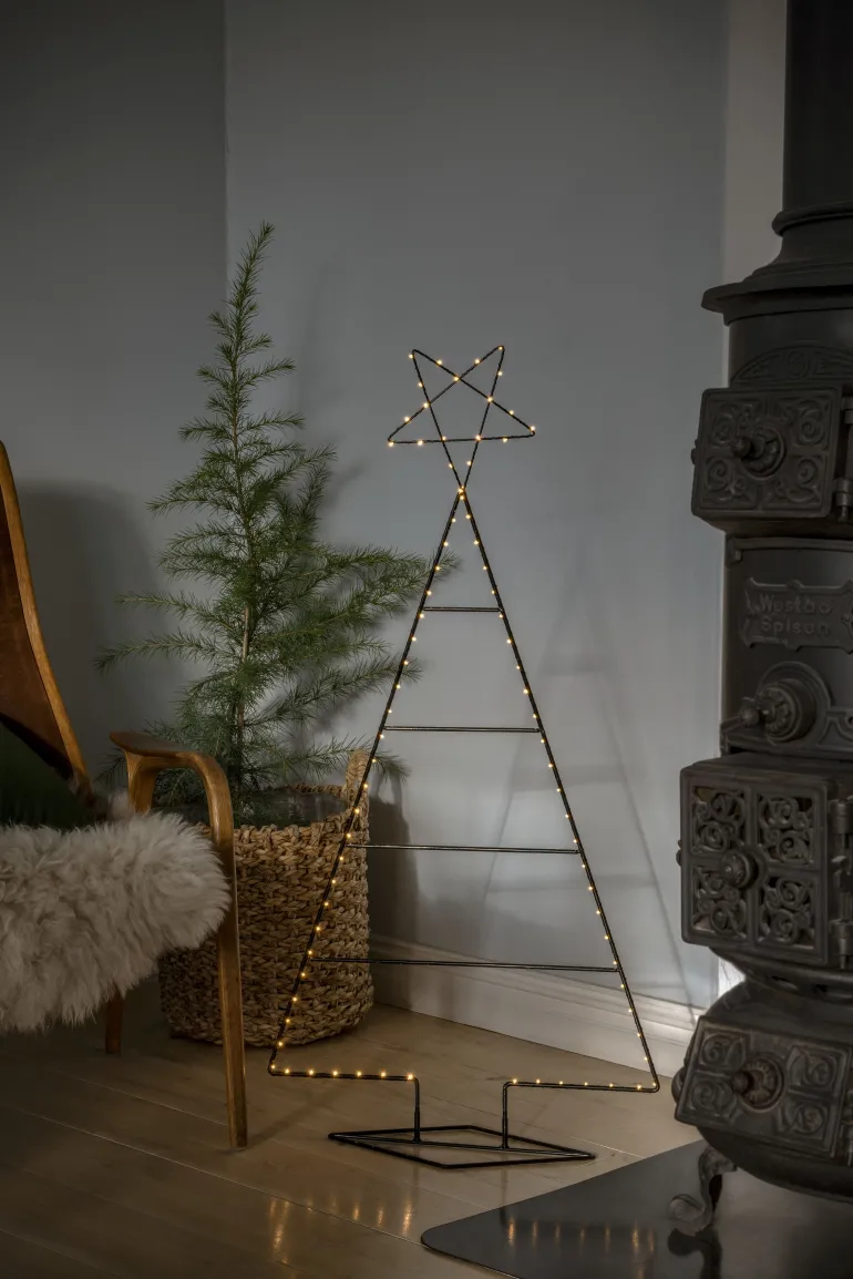 Konstsmide 1791-787 on metallinen valokoriste (kuusen muoto) 110 cm, jossa 82 amber-väristä mikro-LEDiä. 3V / IP20.