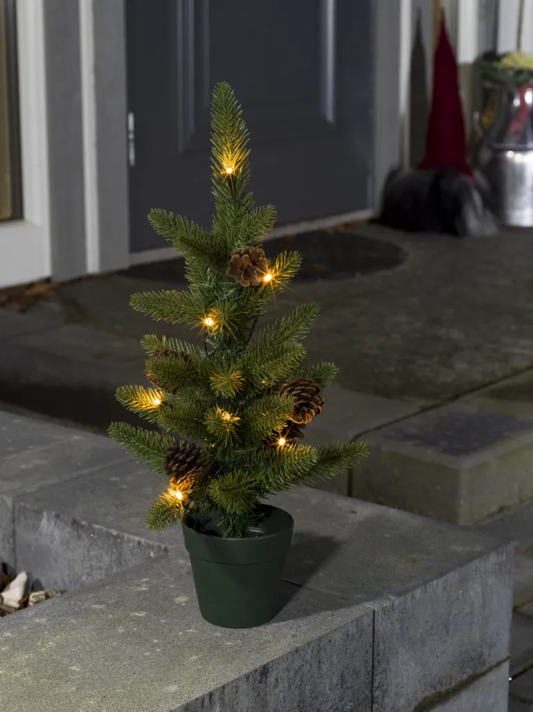 Konstsmide 3780-100 on valokoriste 45 cm (joulukuusi), jossa on 10 lämpimän valkoista LEDiä. Ajastin 6/9 h, 4 x AA-paristoa.