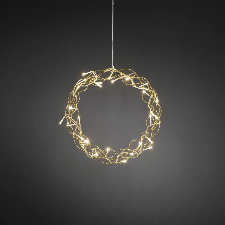 Konstsmide 2890-303 on valokranssi, jossa on 32 lämpimän valkoista LEDiä. 30 cm metallia, väri hopea, 24 V/IP20.