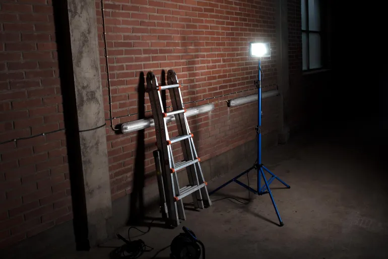 TARGET T30 on ohut LED-valonheitin, jossa on huurrelasi, joka torjuu häikäisevää valoa. Työvalaisimessa on kulmakannatin, ja se voidaan asentaa seinälle tai telineeseen.