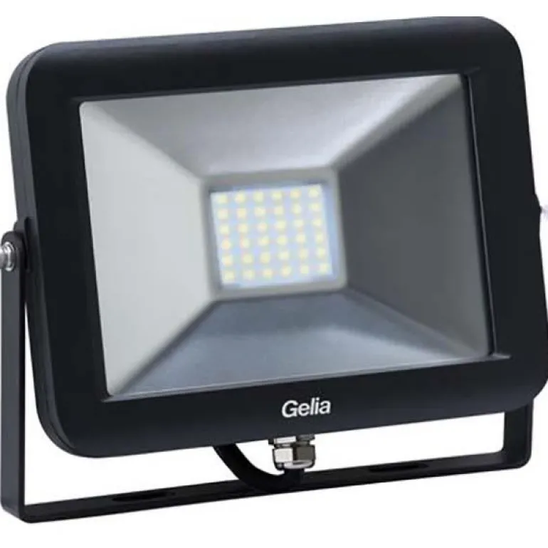 Gelia TARGET T50 on ohut LED-valonheitin, jossa on huurrelasi, joka torjuu häikäisevää valoa. Työvalaisimessa on kulmakannatin, ja se voidaan asentaa seinälle tai telineeseen. Mukana 0,5 m:n kaapeli H05RN-F 3G1.0, jossa on maadoitettu pistotulppa. Suojausluokka IP65.