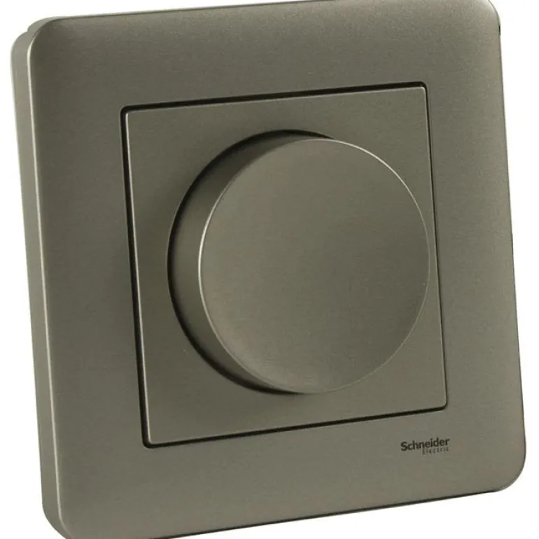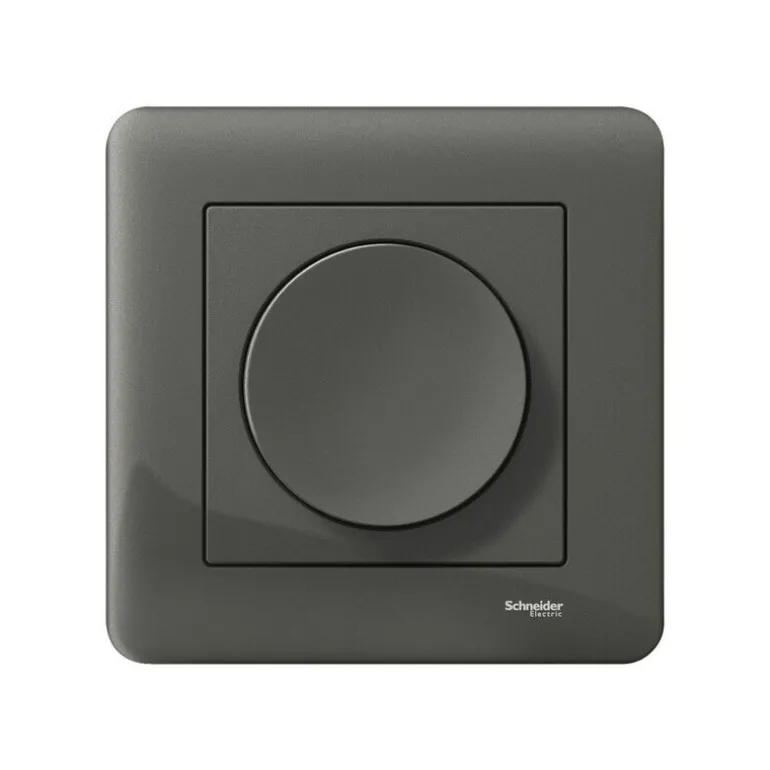 Schneider Electric Exxact valonsäädin/LED-himmennin 4-400 W, antrasiitti. Universaali kiertonuppivalonsäädin. Laite sisältää elektronisen oikosulkusuojan ja automaattisen ylikuormitussuojan turvallisuuden varmistamiseksi. Nimellisvirta 10 A, ja tehoalueet 4 W…200 VA, 4 W…400 VA, 4…40 W, 4…400 W. Kiinnitys ruuveilla. Mitat: leveys 71 mm, korkeus 71 mm, syvyys 51 mm, upotussyvyys 29 mm, projisoitu syvyys 22 mm. Ruuviliittimet. Suojaluokka IP20.