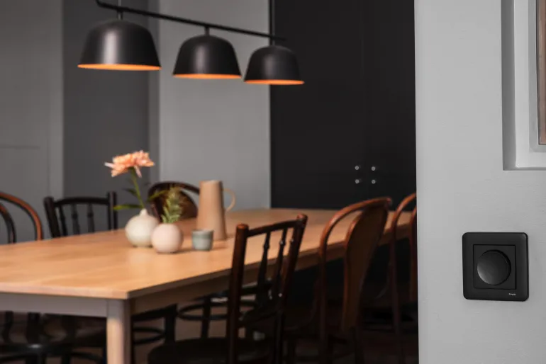 Schneider Electric Exxact valonsäädin/LED-himmennin 4-400 W, antrasiitti. Universaali kiertonuppivalonsäädin. Laite sisältää elektronisen oikosulkusuojan ja automaattisen ylikuormitussuojan turvallisuuden varmistamiseksi. Nimellisvirta 10 A, ja tehoalueet 4 W…200 VA, 4 W…400 VA, 4…40 W, 4…400 W. Kiinnitys ruuveilla. Mitat: leveys 71 mm, korkeus 71 mm, syvyys 51 mm, upotussyvyys 29 mm, projisoitu syvyys 22 mm. Ruuviliittimet. Suojaluokka IP20. Valmistettu ABS-materiaalista, mikä tekee siitä luotettavan ja kestävän. Sertifioitu C E ja täyttää standardit EN 60669-2-1 ja EN 61000-6-3. Ei sisällä elohopeaa. Exxact -sarjan tuotteet on kehitetty pohjoismaisten asennustottumusten mukaan, tarjoten yli 250 toimintoa ja lisäosaa energian ja mukavuuden ohjaukseen.