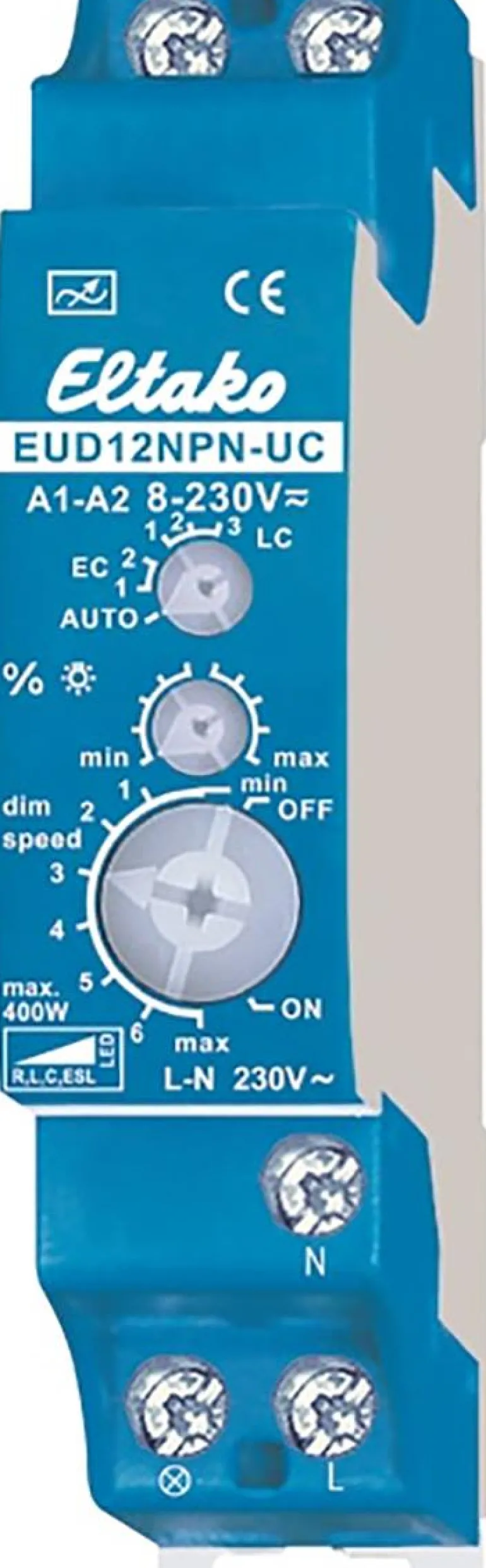 Yleishimmennin. Power MOSFET jopa 400W. Automaattinen kuormituksen tunnistus. Kulutus valmiustilassa vain 0,1 wattia. Vähimmäis- ja enimmäisvalotaso ja himmennysnopeus voidaan säätää. Lastenhuone- ja nukahdustoiminnoilla. Himmennin vaatii nollajohdon.