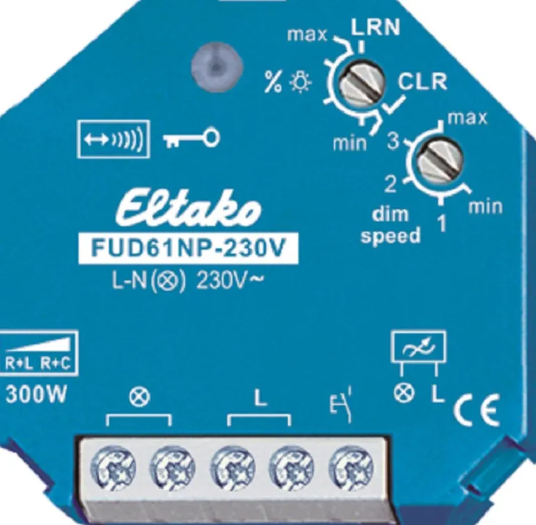 Yleisrasiahimmennin, jossa ei ole nollajohtimen (N) tarvetta, R, C, L-kuormituksille. Valmiustilan kulutus vain 0,7 wattia. Käyttö- ja ohjausjännite 230 V AC. Kuormatyypin R+L tai R+C automaattinen havaitseminen Vähimmäisvalotaso ja himmennysnopeus voidaan säätää. Valoherätyskellolla, lastenhuonetoiminnolla ja nukahdustoiminnolla. Enintään neljä valoskenaariota voidaan ohjelmoida painikkeella, jossa on kaksoiskytkimet. Automaattinen elektroninen ylikuormitus- ja lämpötilasuojaus. Säädetty valotaso tallennetaan sammutettaessa. Pehmeä ON ja OFF-toiminto kuorman säästämiseksi. Himmennettäviä matalaenergialamppuja ja himmennettäviä 230V LED-lamppuja ei voida ohjata tällä himmentimellä. Kiekkoa voidaan ohjata eri lähettimillä. Sitä voidaan ohjata myös jousikuormitteisilla kytkimillä. Tarvitaan vähintään 40 W:n kuormitus.