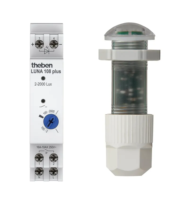Analoginen hämäräkytkin, ulkoinen valoanturi. Päälle/pois kytkemisen kiinteä viive, jotta vältytään virheelliseltä kytkemiseltä salamista, auton ajovaloista jne. tulevan valon aikana. Näyttö kanava- ja kytkentätilan näyttämiseksi