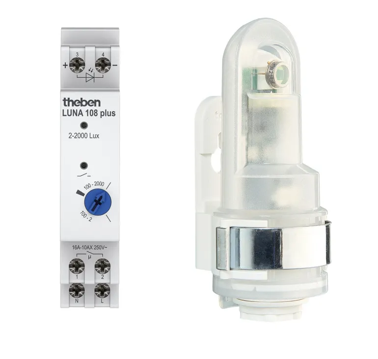 Analoginen hämäräkytkin, ulkoinen valoanturi. Päälle/pois kytkemisen kiinteä viive, jotta vältytään virheelliseltä kytkemiseltä salamista, auton ajovaloista jne. tulevan valon aikana.