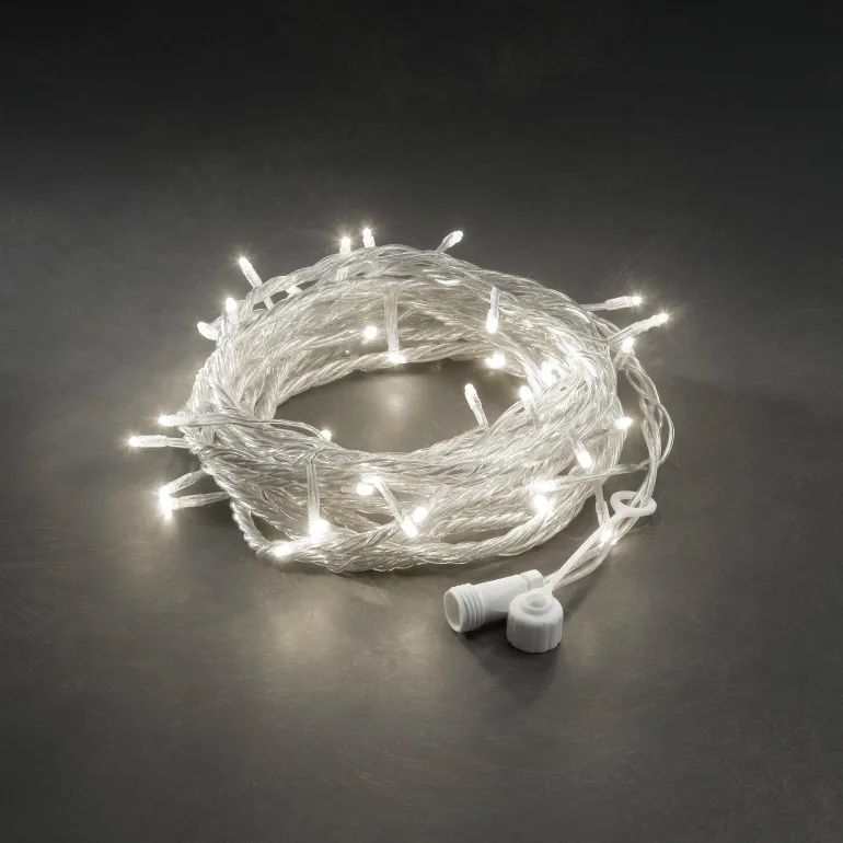 Konstsmide 4850-803 on valosarja, jossa on 50 LEDiä (valon väri amber). Läpinäkyvä kaapeli, 31V / IP44.