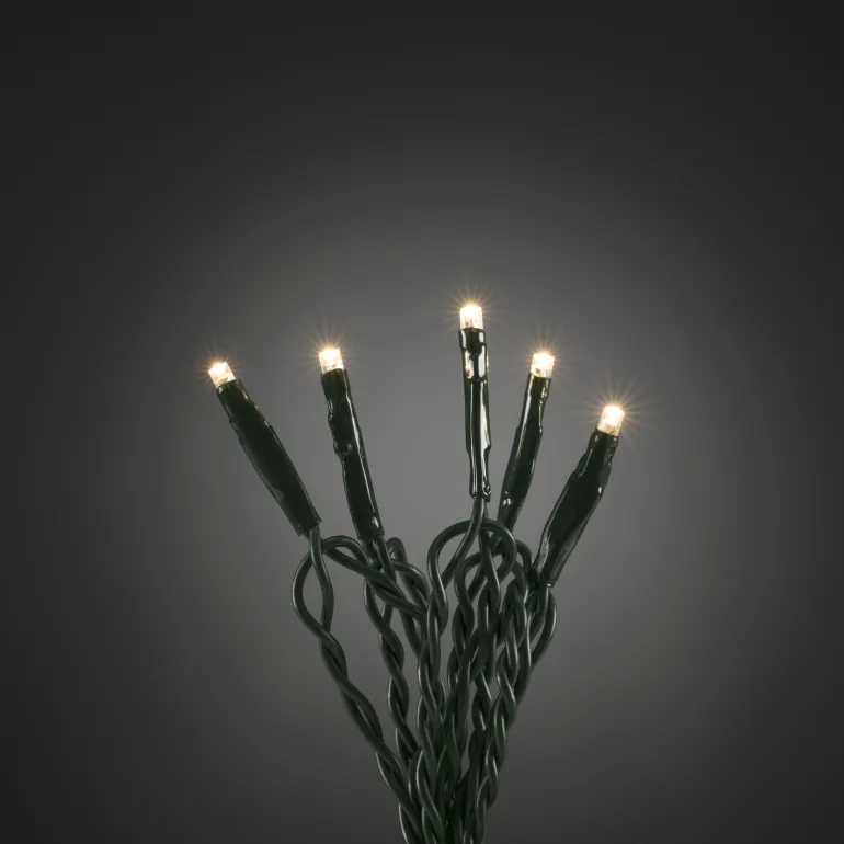 Konstsmide 6353-120 on valosarja, jossa on 50 lämpimän valkoista LEDiä. Tummanvihreä kaapeli, 24V/IP20.