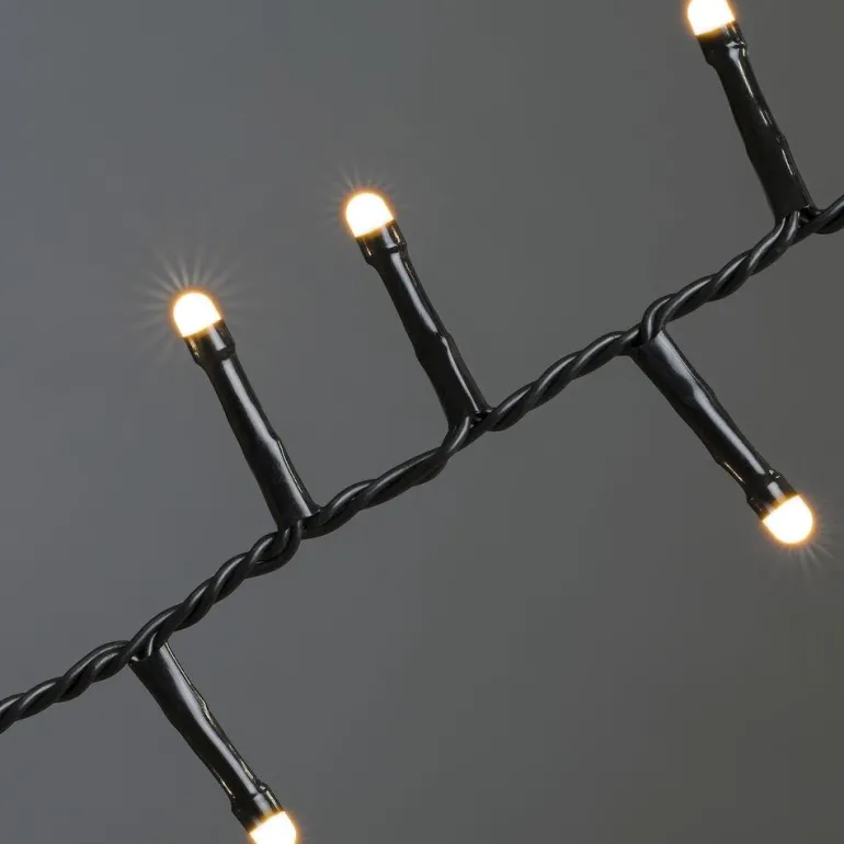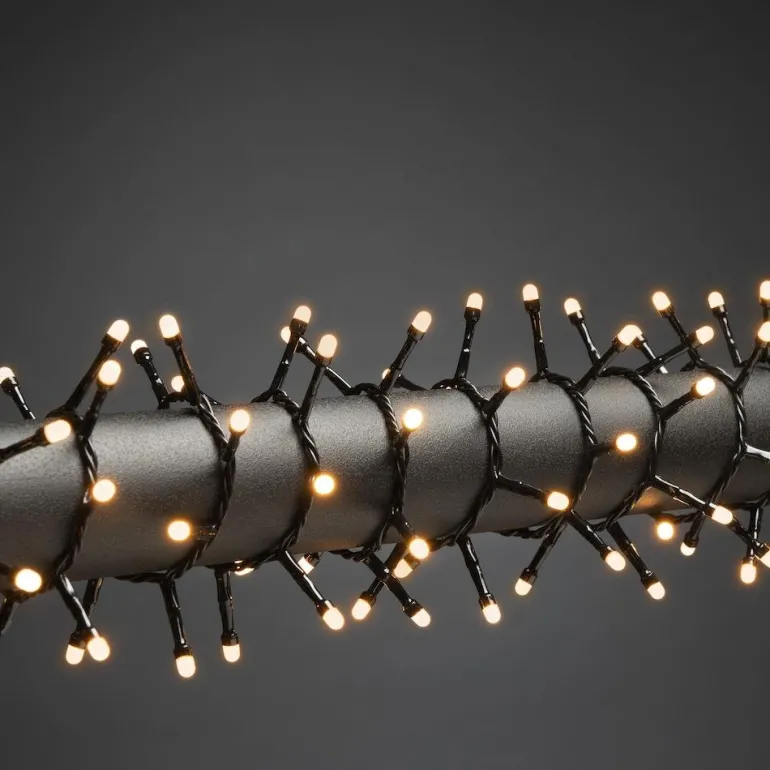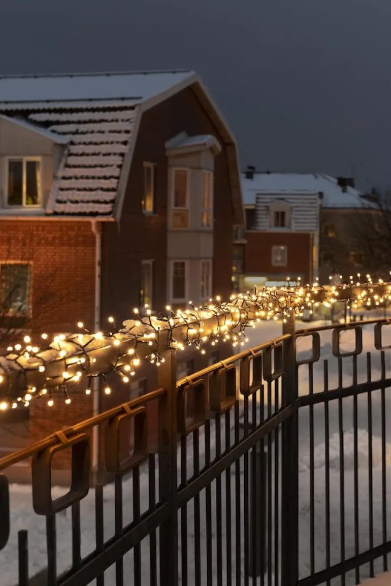 Cluster-valosarja, jossa on 400 keltaisenväristä huurrettua LED-valoa. Valaistu alue on noin 8,7 metriä. Sopii punottavaksi esimerkiksi parvekekaiteen ympärille. Mukautettu ulkokäyttöön ja virtalähteenä muuntaja.
