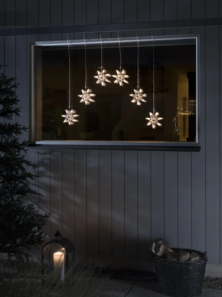 Konstsmide 4045-103 on valosarja, jossa 6 tähteä (48 lämpimän valkoista LEDiä). 24V/IP44.