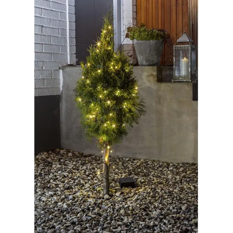 Valosarja 80 oranssilla valodiodilla ja hämäräkytkimellä/ajastimella 6/9 h. 10 cm lamppujen välillä. Toimitus sisältää 2 kpl R20-paristoa.