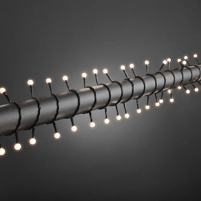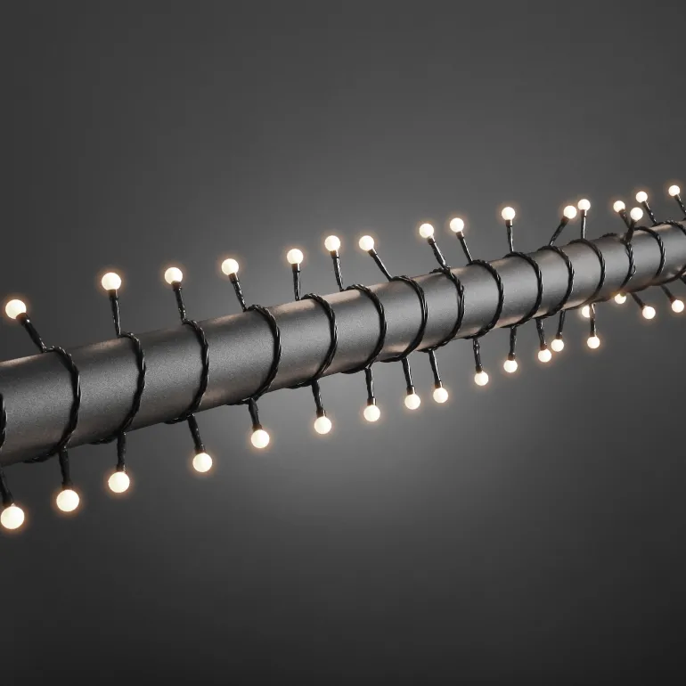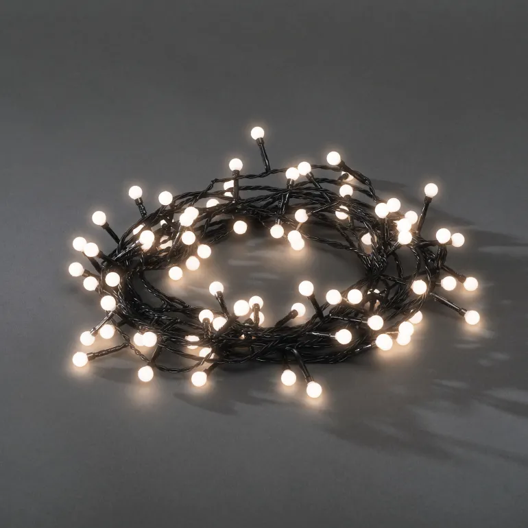 Konstsmide 3691-107 on valosarja, jossa on 80 lämpimän valkoista cherry-LEDiä. Musta johto, 24V/IP44.