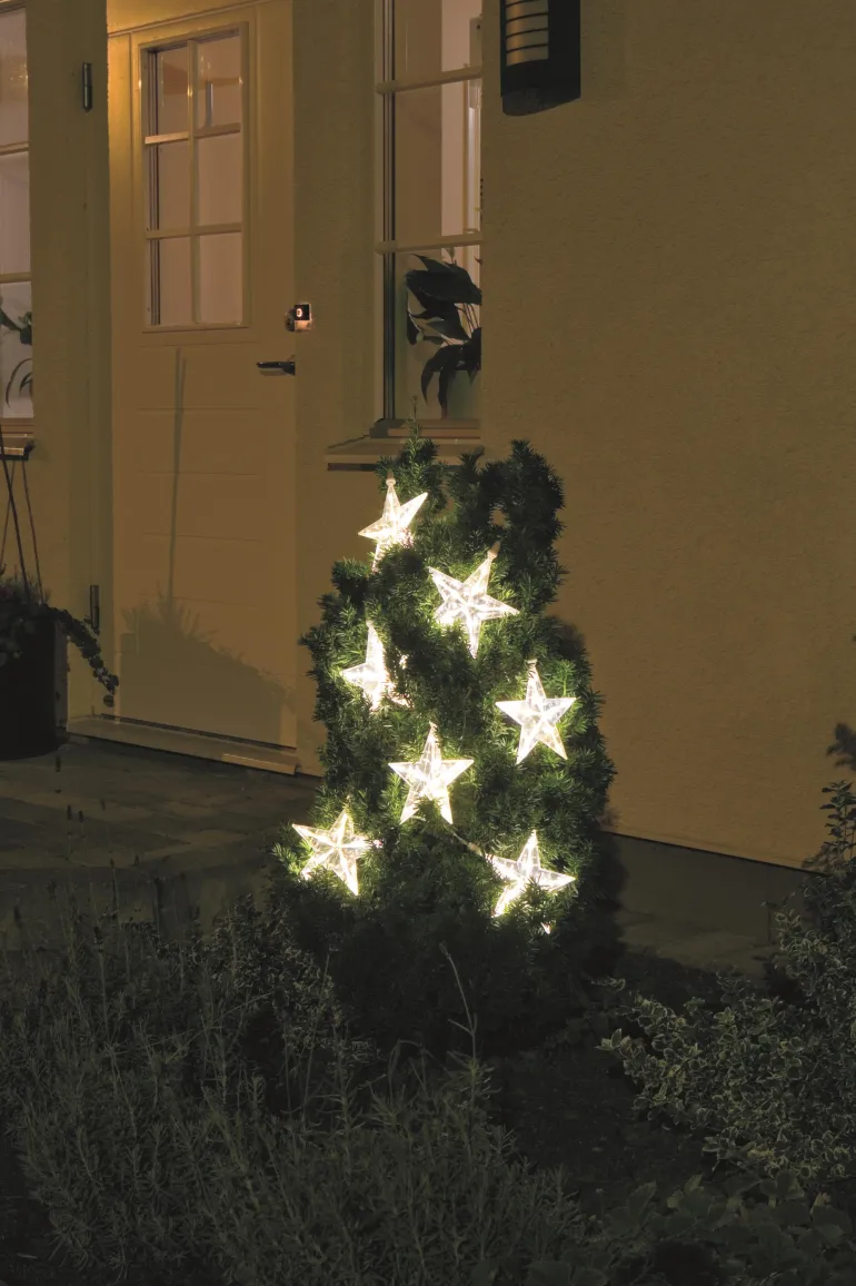Konstsmide 1243-103 on valosarja, jossa on 7 lämpimän valkoista LED-tähteä. 24V/IP44.