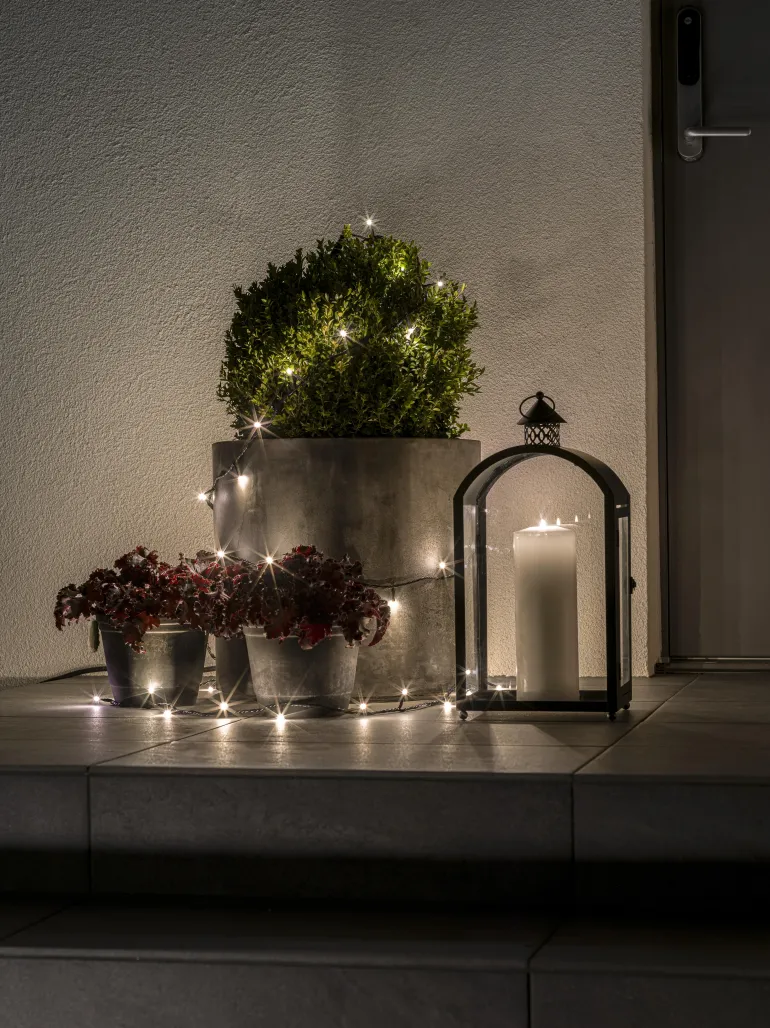 Konstsmide 4850-137 on valosarja, jossa on 50 lämpimän valkoista LEDiä (huurrettu). Musta pehmeä kaapeli, 31V/IP44.
