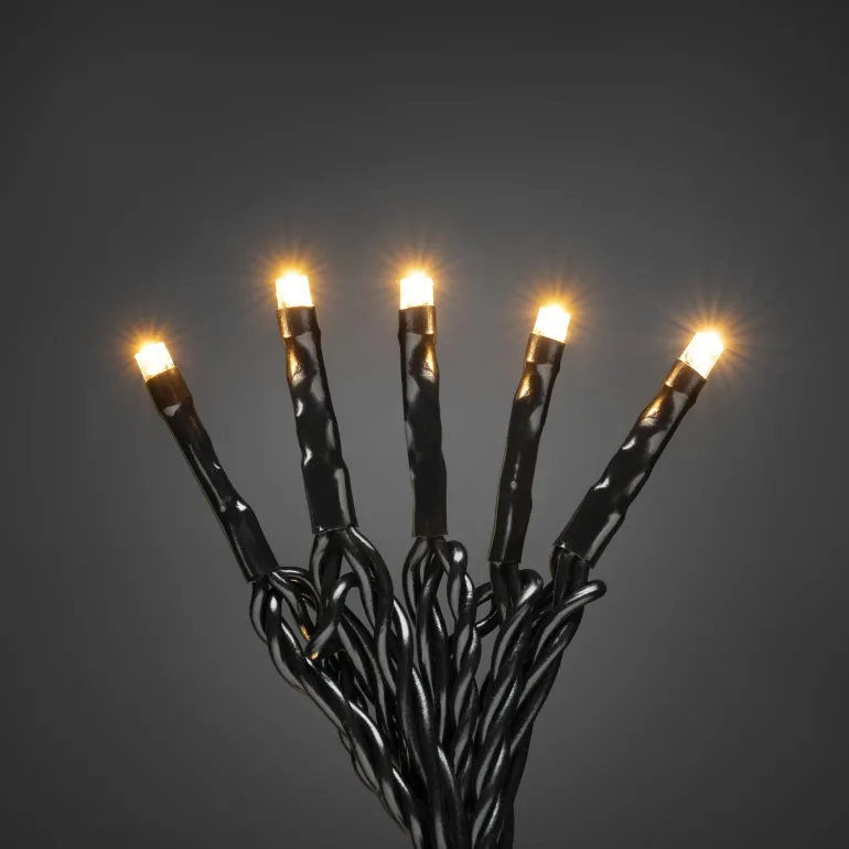 Konstsmide 3956-107 on valosarja, jossa on 100 lämpimän valkoista LEDiä (start/split). Pehmeä kaapeli, 31V / IP44.