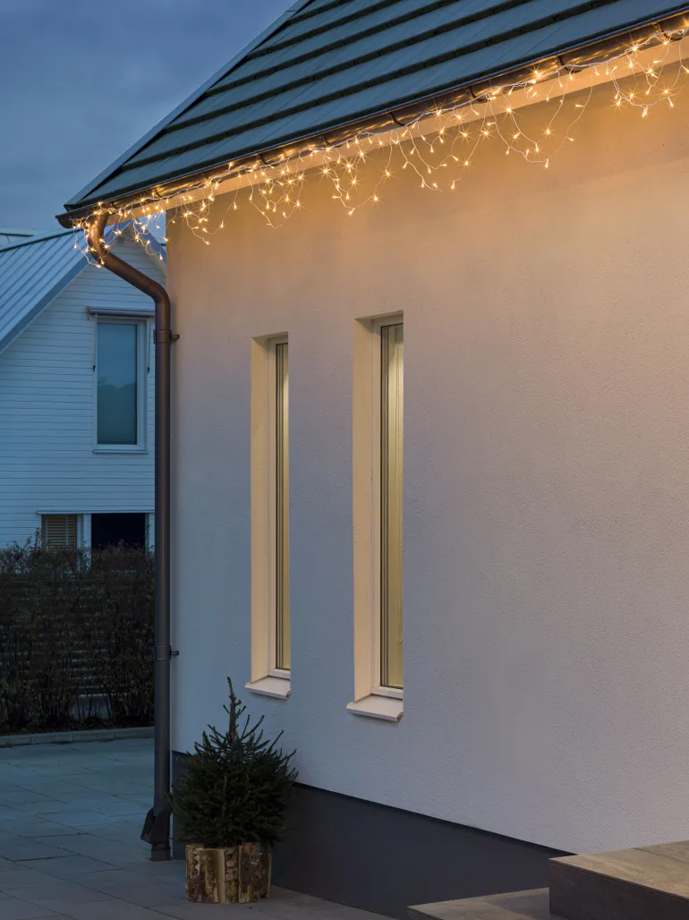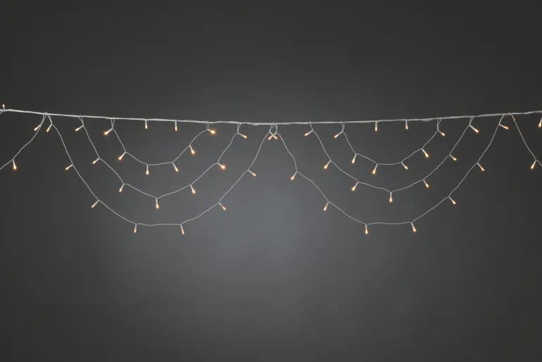 Konstsmide 2778-802 on valosarja 3 valokaarella (184 LEDiä, valon väri amber). 24V/IP44. Valosarjan pituus 5,6 m (liitäntäjohdon pituus 10 m/kokonaispituus 15,6 m).