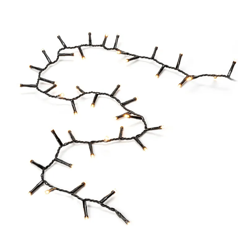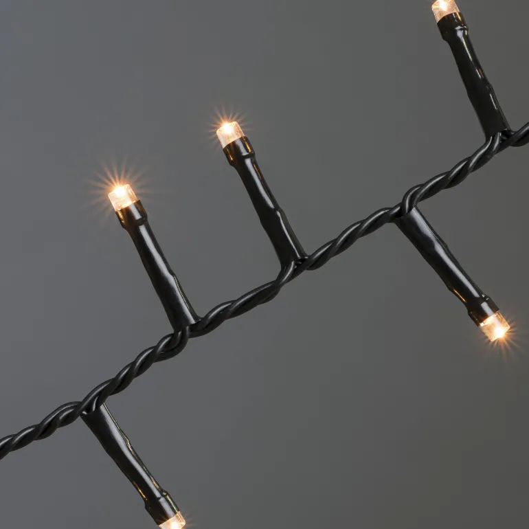 Konstsmide 3872-800 on valosarja, jossa on 2000 LEDiä (cluster, valon väri amber). Musta johto, 30V/IP44.