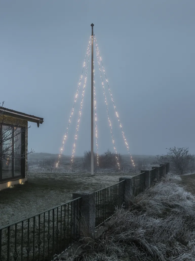 Konstsmide 4781-137 on valosarja lipputankoon, jossa on 5×100 LEDiä (valkoinen, huurrettu). Musta pehmeä kaapeli.
