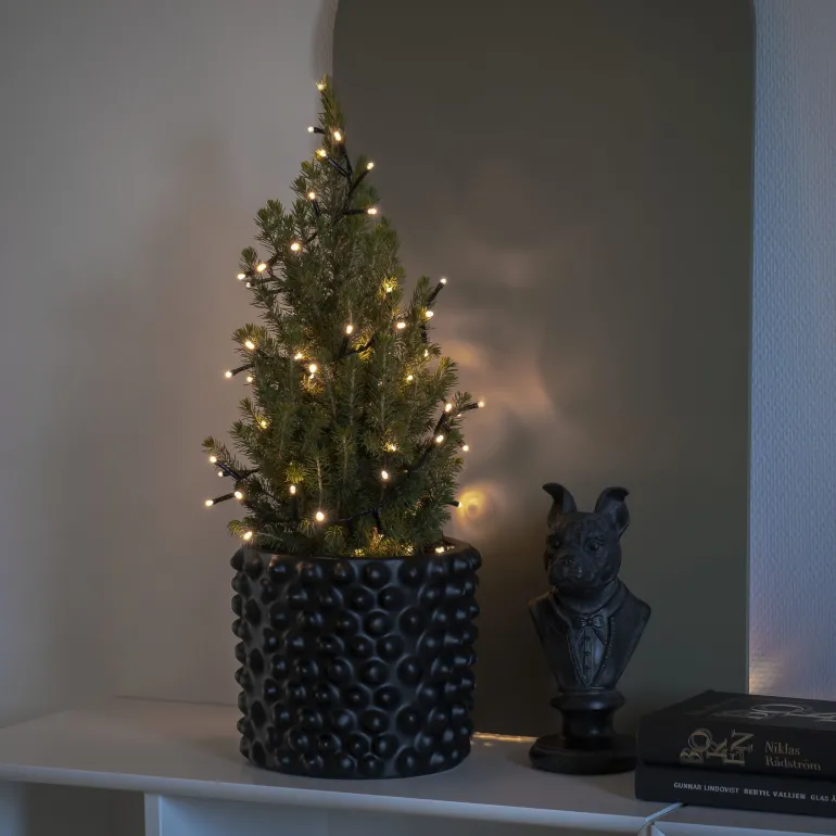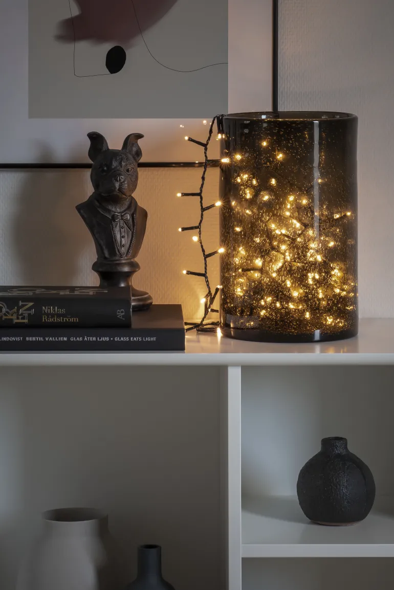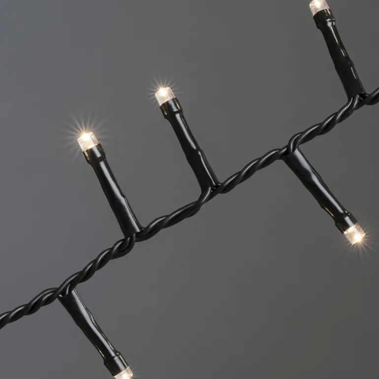Konstsmide 3875-100 on valosarja, jossa on 200 lämpimän valkoista LEDiä. Musta johto, 30V/IP20.