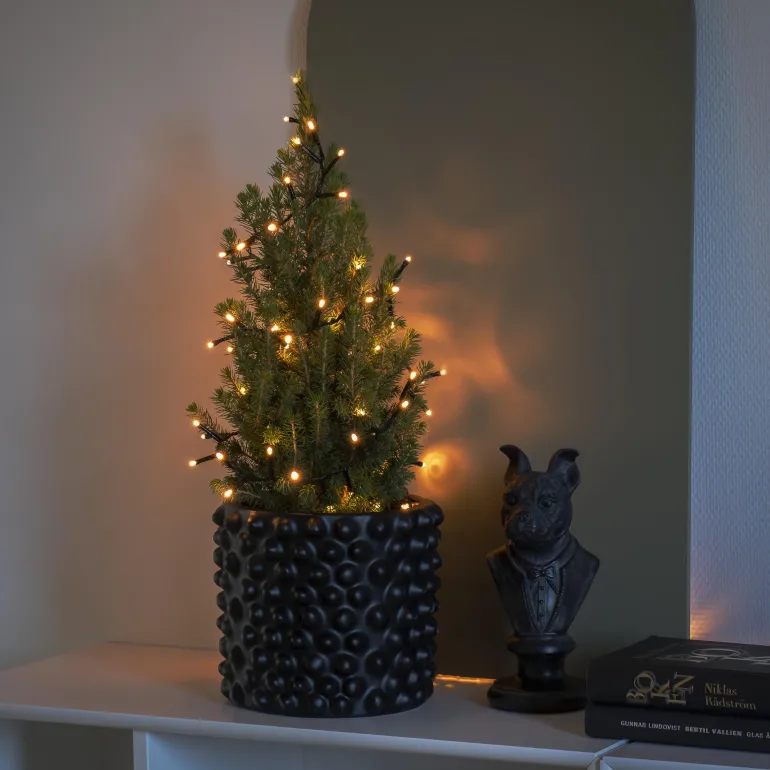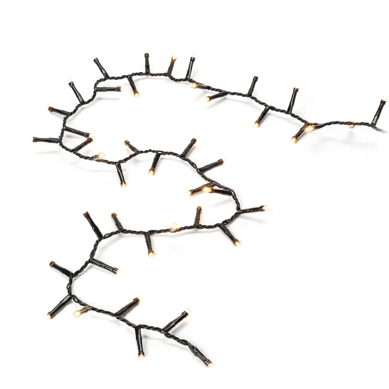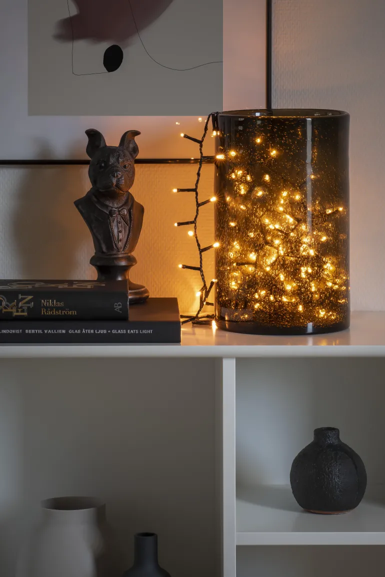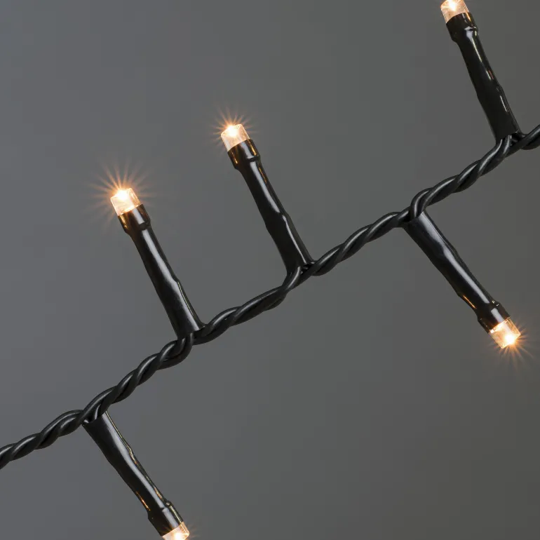 Konstsmide 3875-800 on valosarja, jossa on 200 LEDiä (valon väri amber). Musta johto, 30V/IP20.