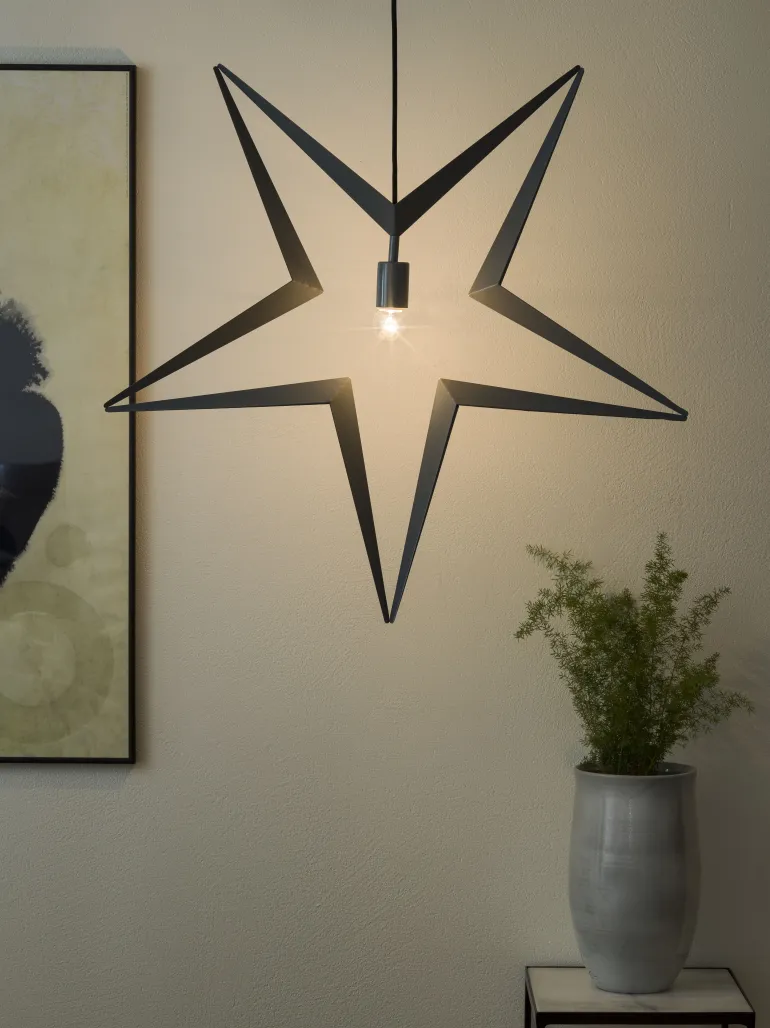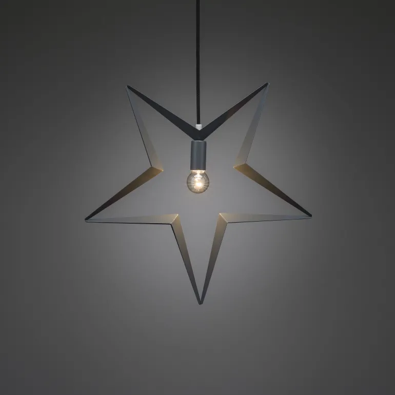 Konstsmide 2578-317 on harmaa valotähti metallia, 80 cm. Musta tekstiilinen johto, 230 V.
