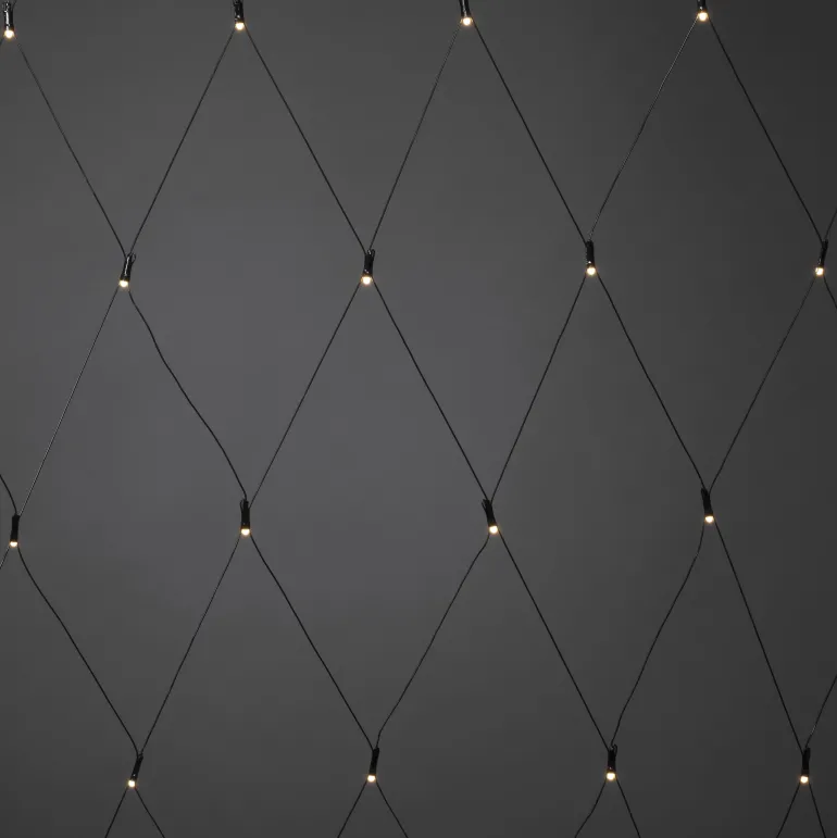 Konstsmide 3788-100 on valoverkko, jossa on 120 lämpimän valkoista, huurrettua LEDiä. 2,5×1,5 m, musta johto. 24V/IP44.