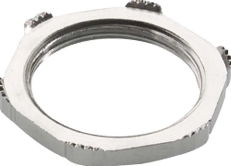 Vastamutteri potentiaalintasaukseen, metrikokoinen kierre, EN 60 423 nikkelipinnoitettu messinki.