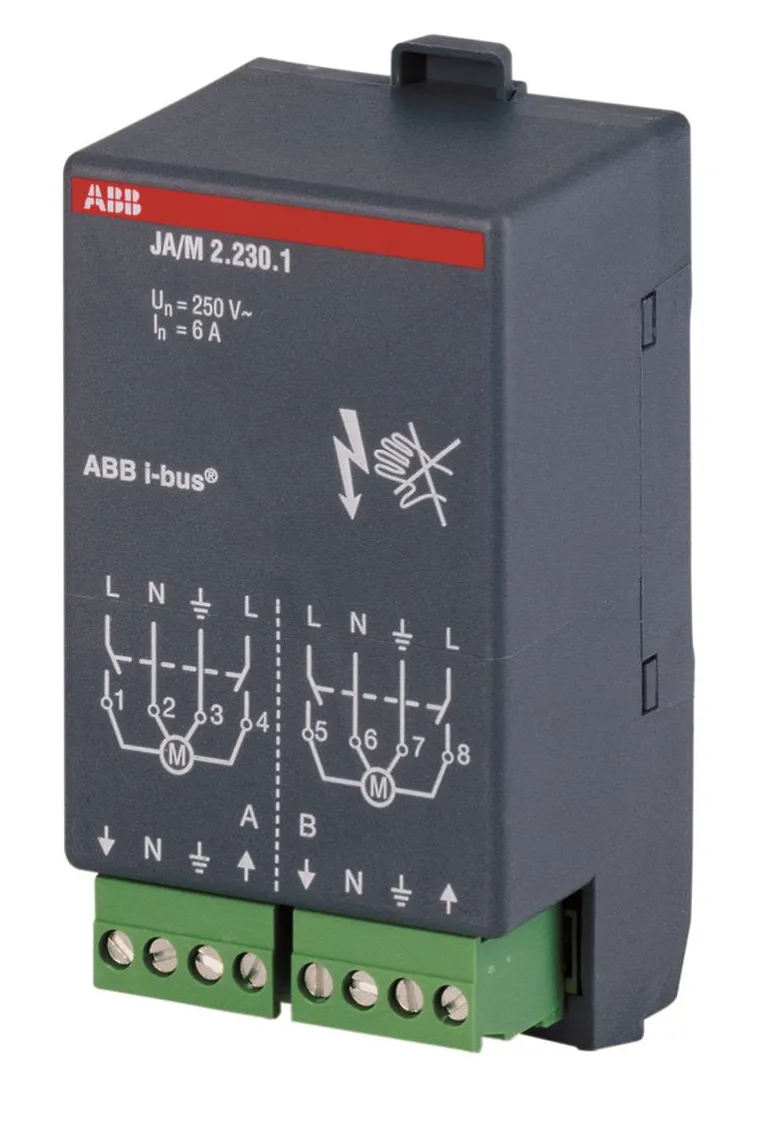 Verhomoottoriohjain 2 kanavaa, asennetaan huoneohjainrasiaan. 2 potentiaalivapaata kärkeä 230 V~ 50 Hz, 6 A – AC3 ja 24 V DC.