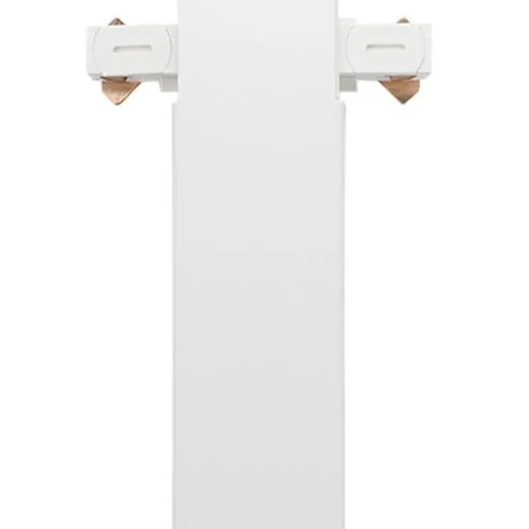 Valkoinen verkkoliitäntä T-liitäntään ZIP-kiskoon. Mitat 87 x 35 x 22 mm, pinta-asennukseen sisätiloihin. Eristysluokka I.