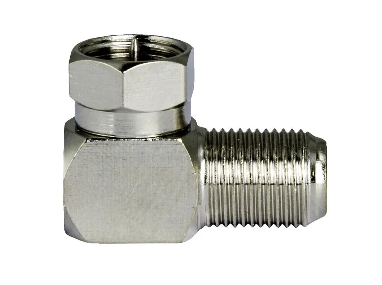FWV1 on 90° kulmasovitin F-naaraasta F-urokseen. Liitin on korkealaatuinen, materiaalina kromattu messinki.