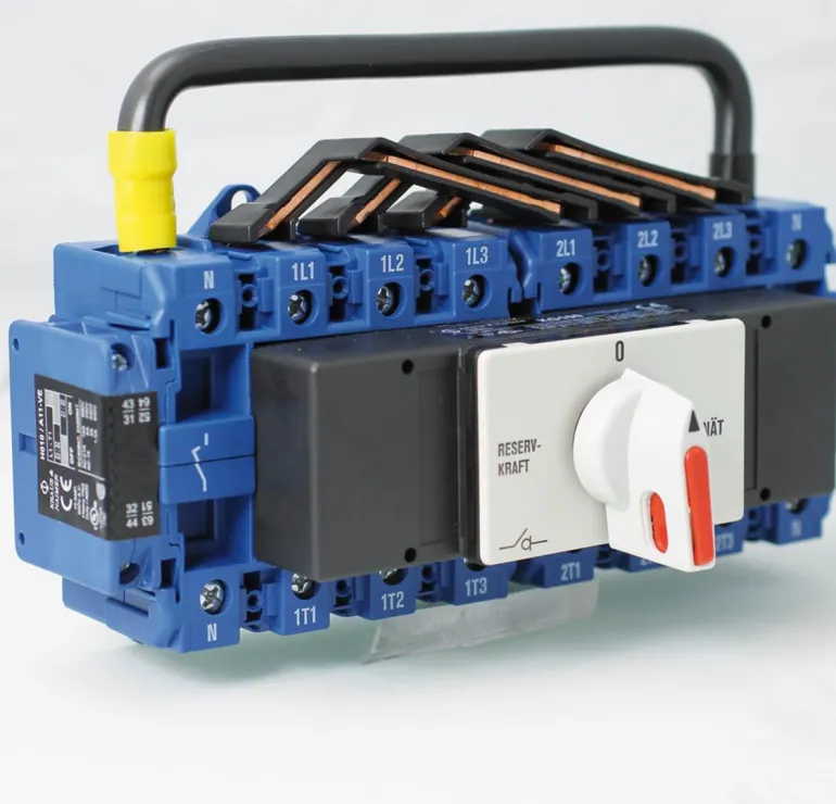 Suljettu, nokkaohjattu apukosketin kummassakin asennossa: RESERVKRAFT (varavirta) ja NÄT (verkkovirta).