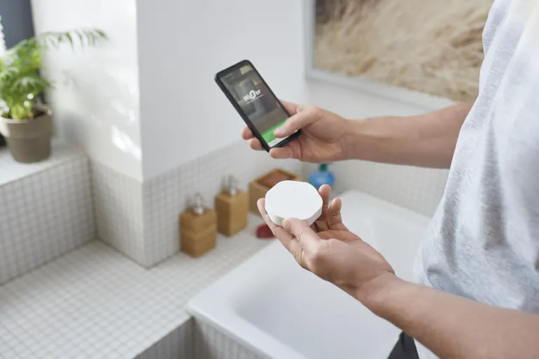 Vesivuotosensori sijoitetaan tiloihin, joissa on vuotovaara, kuten kylpyhuone/wc, keittiö, pesuhuone/kodinhoitohuone ja kellari. Tunnistinta hallitaan Wiser -sovelluksen kautta.