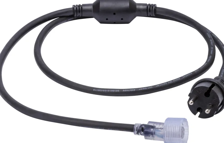 Virtakaapeli muuntajalla 230 V ja pistokeliitäntä Gelia ROPE Worklight -LED-valonauhaan. Pituus 1,5 metriä. Muuntaja on yhteensopiva 50 metrin LED-valonauhan kanssa.