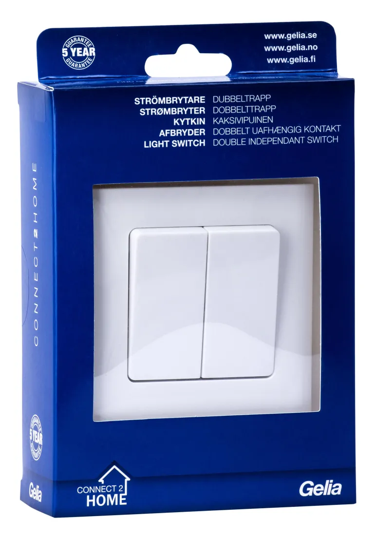 Gelian kehittämä Connect 2 Home -sarja sisältää kytkimet, pistorasiat ja valaistuksen säätölaitteet. Tuotteet ovat helppokäyttöisiä ja helposti asennettavia.
