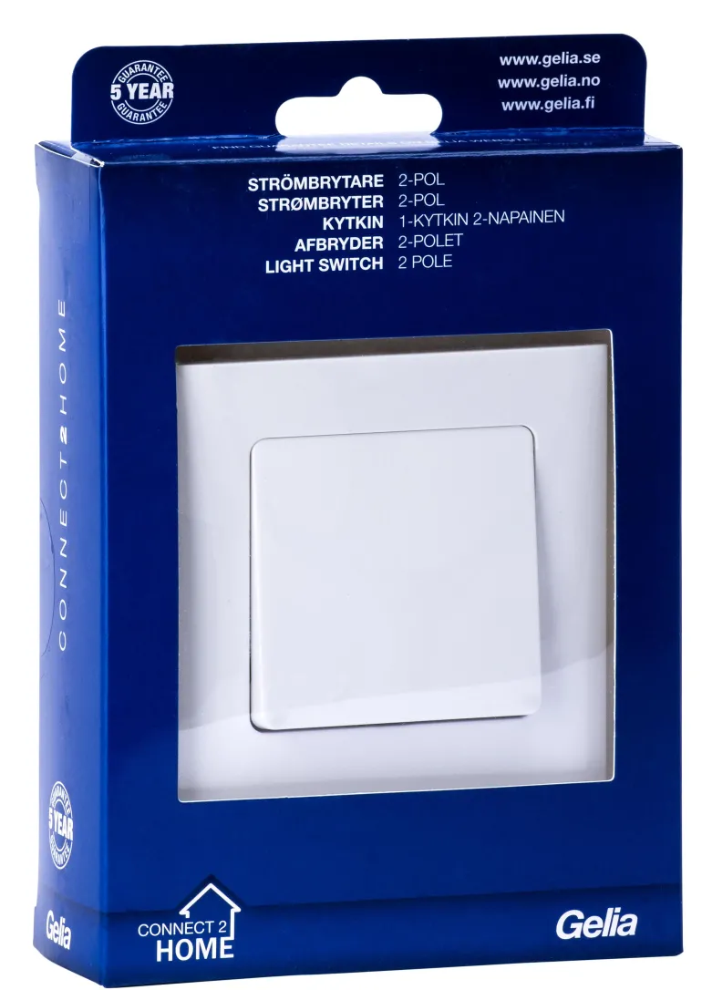 Gelian kehittämä Connect 2 Home -sarja sisältää kytkimet, pistorasiat ja valaistuksen säätölaitteet. Tuotteet ovat helppokäyttöisiä ja helposti asennettavia.