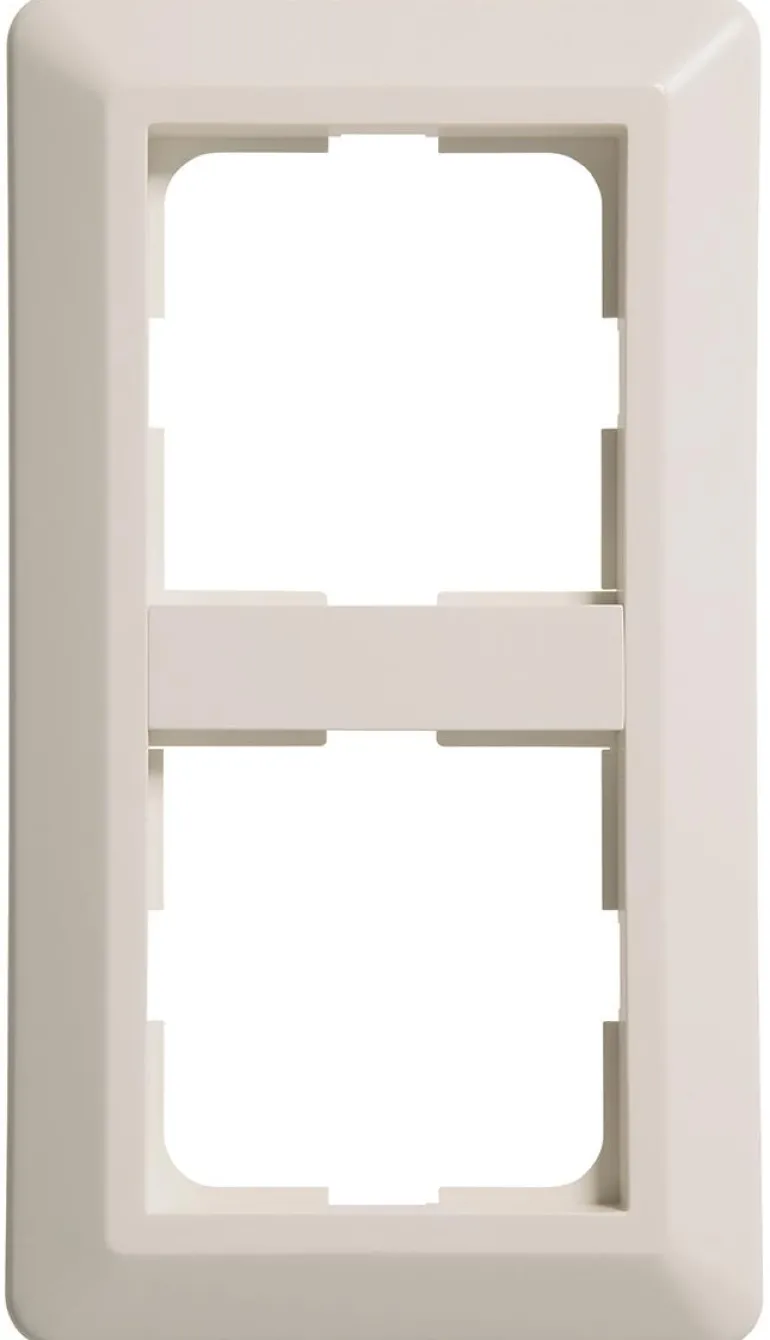 Yhdistelmäkehys, jossa on 5 osastoa upotettaville kytkimille, pistorasioille jne. Aukkojen välissä olevat rimat ovat irrotettavissa ja malli voidaan asentaa sekä vaaka- että pystysuunnassa. Mitat 84 x 10,5 x 368 mm, valmistettu valkoisesta lämpömuovista.