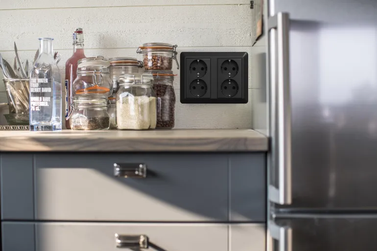 RS-sarjan peitelevy mm. upotettavia kytkimiä ja pistorasioita varten. Materiaali on halogeenitonta kestomuovia.