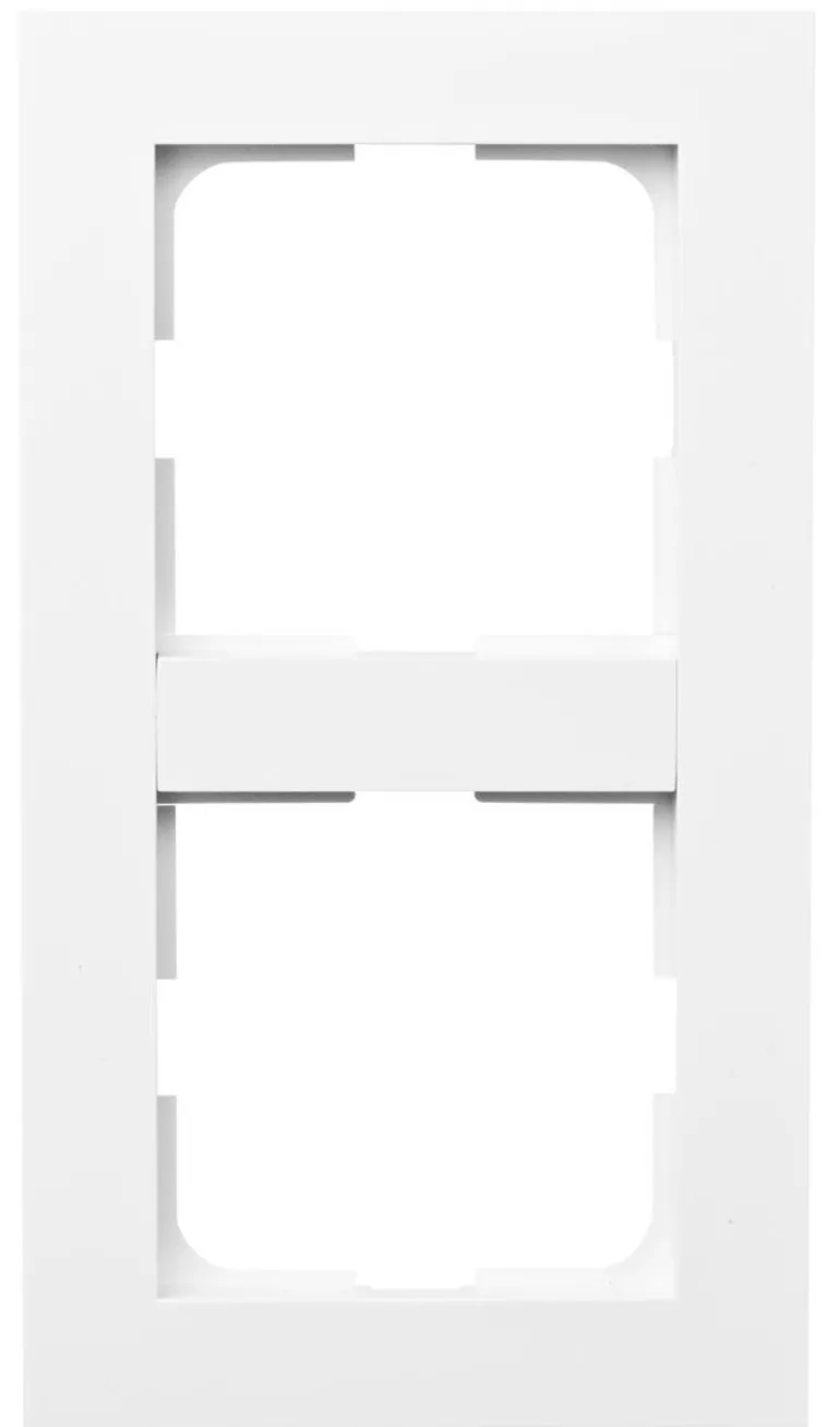 Yhdistelmäkehys upotettaville kytkimille, pistorasioille jne. Aukkojen välissä olevat rimat ovat irrotettavissa, mikä mahdollistaa mm. 3-osaisten pistorasioiden asentamisen kahteen reikään.