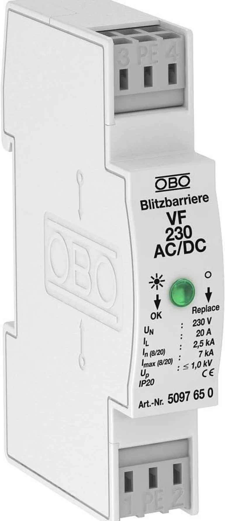 Elektronisten laitteiden hienosuojaus. Kiinteästi laitekaappiin asennettava ylijännitesuoja. Suoja on tarkoitettu asennettavaksi tietokoneiden, modeemien, prosessinohjauksen ja muiden elektronisten laitteiden virtapiiriin. Suojapiirit koostuvat sinkkioksidivaristoreista ja kaasunpoistosta. Vihreä merkkivalo ilmaisee oikean toiminnon. Suojia on saatavilla eri nimellisjännitteille. VF-FS-malli on varustettu apukoskettimella etämerkinantoa varten vikatilanteessa.