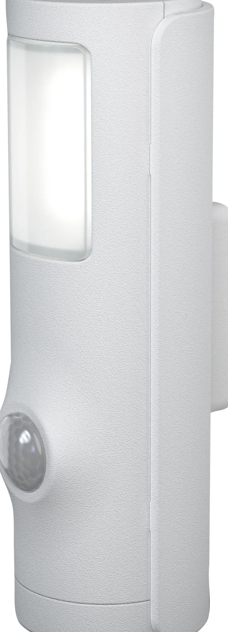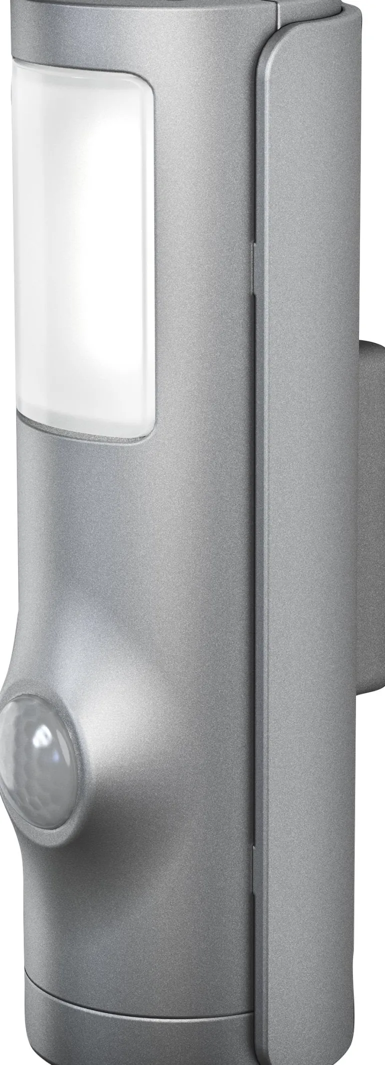 Paristokäyttöinen yövalo integroidulla valo- ja liiketunnistimella. Lamppu voidaan irrottaa pidikkeestä, jolloin sitä voidaan käyttää kannettavana valaisimena. Soveltuu sekä sisä- että ulkokäyttöön.